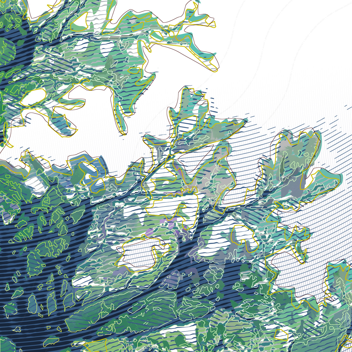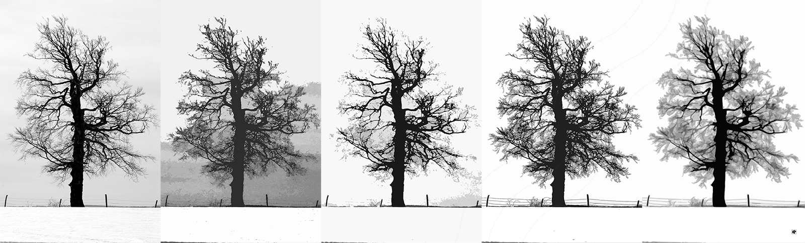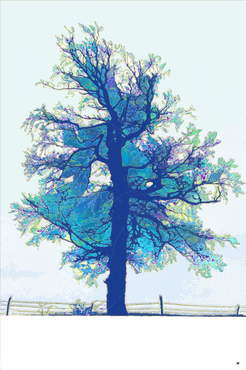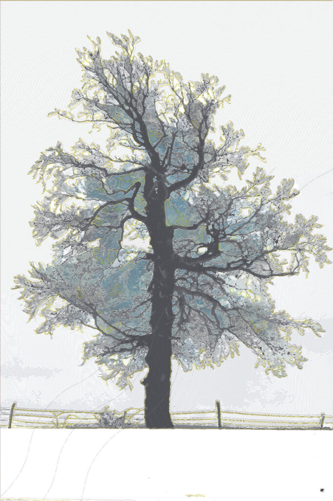 Recherche d’écriture numérique à partir d’une photographie d’un viel arbre situé au crêt Monniot, dans les montagnes du Haut-Doubs.