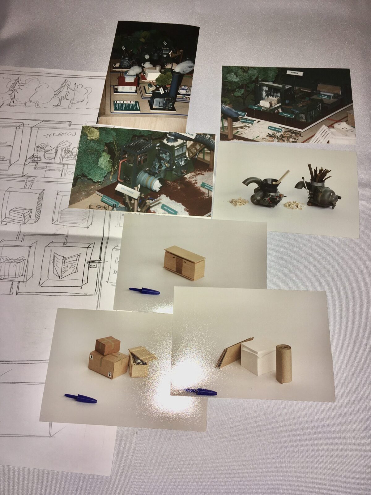Certains décors etaient réalisés à l’aide de photos découpées ou d’objets miniatures travaillés en volume.